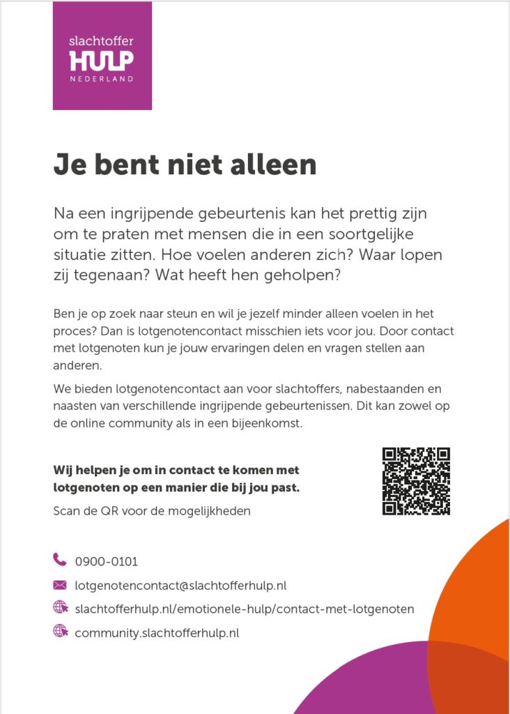In contact komen met lotgenoten? dat kan via slachtofferhulp nederland